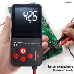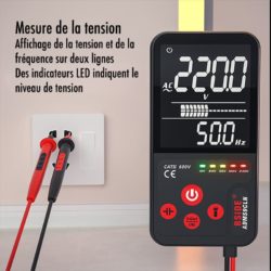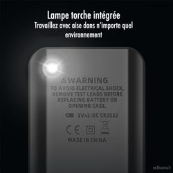 Vous cherchez à mesurer la tension entre deux points ? Ce voltmètre sera votre parfait compagnon. En plus de pouvoir mesurer la différence de potentielle électrique sur des tensions continues et alternatives, ce voltmètre pourra mesurer la résistance, la capacitance, effecter des mesures sans contacts etc. Ce voltmètre dispose également d’un mode intelligent qui vous permettra de mesurer automatiquement la tension, la résistance et la continuité.